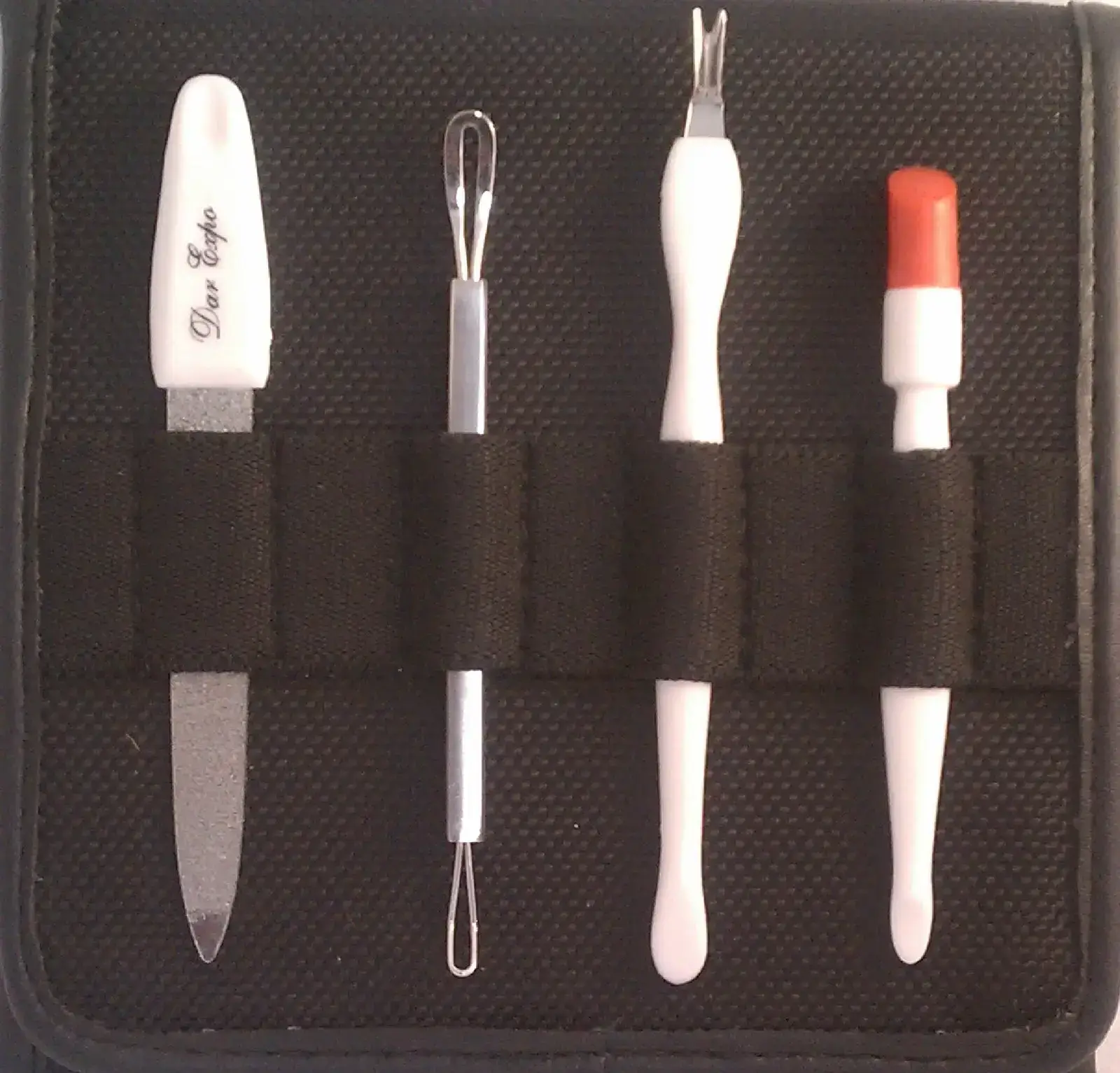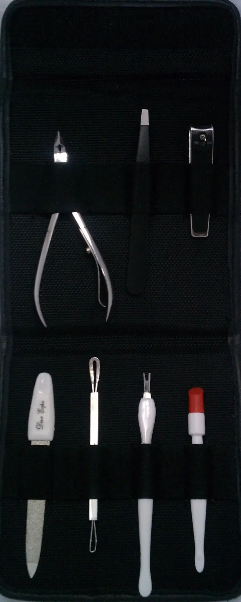 All 7 products packed in an elegant black pouch with belt clip at back.